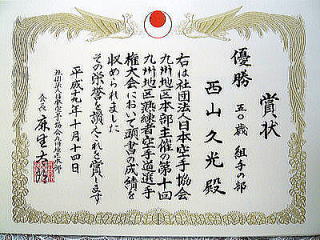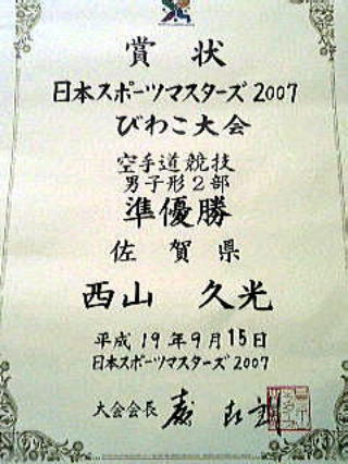 組手5位入賞。2003年では佐賀県大会形優勝、組手準優勝、九州シニア大会形・組手優勝、全日本マスターズ形5位入賞を成す。